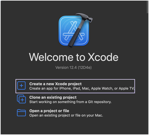 To create your first iOS application, launchn Xcode To create your first iOS application, launchn Xcode from the Launchpad on your Mac. You should see the welcome screen as shown below.